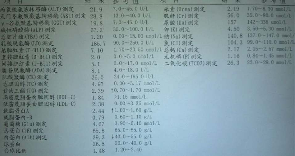 你好医生前两天做的大生化检查 能不能麻烦专家帮看一下报告结果 怀孕5个月,目前有湿疹已经2周多了