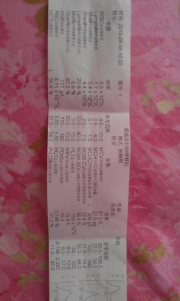 昨天的验血单,红细胞压积35.9%/L (参考范围 37.0~54.0)平均红细胞血红蛋白浓度30 昨天的验血单,红细胞压积35.9%/L (参考范围 37.0~54.0)平均红细胞血红蛋白浓度309 g/L(参考范围 320~360)比参考偏低,其他都在范围内,有什么问题吗? 点击展开 淡淡的女子713 2015-08-07 09:51 为您推荐: 其他回答 贫血,多吃点补血的食物 ①公里の回憶------ 2015-08-09 21:49 医生建议哦! 135*****593_hw79 2015-08-09 17:09 问问医生吧 小丸子! 2015-08-09 17:07 祝你们幸福 hl411381 2015-08-08 22:57 问问医生吧 _Jane↗ 2015-08-08 14:09 加载更多 相关问题 小孩出生3天黄疸高验血白细胞13 94,红细胞6 5,血红蛋白233,红细胞压积72,平均红细胞 昨天的验血单,红细胞压积35 9%/L和平均红细胞血红蛋白浓度309g/L,其他都在范围内,有什么 6个月宝宝体检验血单:白细胞9 38、血红蛋白106、红细胞压积32 1、红细胞平均体积75 7、