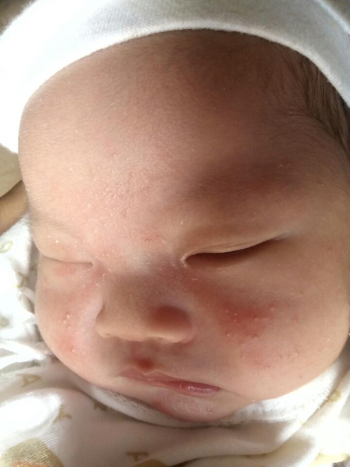 我家宝宝脸上有类似于粉刺白头的小疙瘩,是怎么回事?他今天17天了,就这2天才长的,而且这2天还没吐