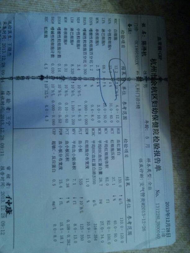 宝宝五个月,昨天验血的报告,医生检查说是支气管炎,挂了盐水,感觉好的不是很明显,家里有一个肺结核病