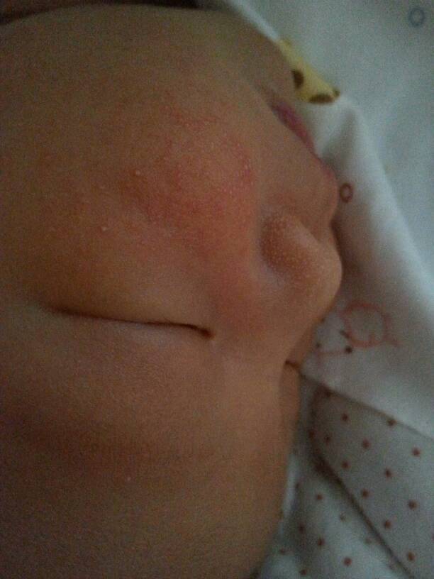 宝宝才七天大,脸上长得是什么,已经三天了,越来越严重,真心疼最近还一直吐奶,拍嗝了也还吐 有专业