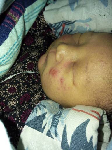 这个应该是湿疹,别捂着孩子。它会自己下去的,如果严重了或者你不放心就去医院看看,但是不建议涂抹软膏,因为有激素刺激。这个湿疹是会反复的,所以重在平时的护理