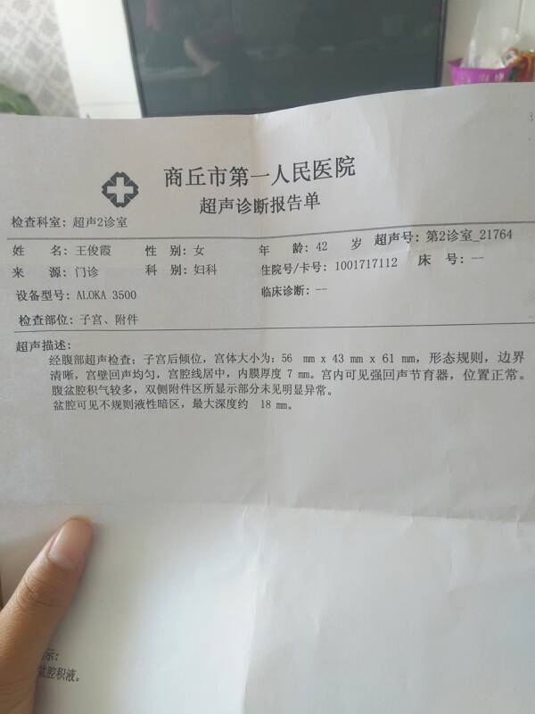 盆腔可见不规则液性暗区,最大深度约18mm.大家帮我看看正常吗,我帮朋友看的