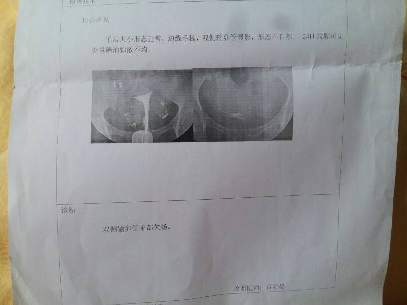 我造影结果,子宫大小形态正常,边缘毛糙,双侧输卵管显影,形态不自然,24h盆腔可见少量碘油弥散不均 我造影结果,子宫大小形态正常,边缘毛糙,双侧输卵管显影,形态不自然,24h盆腔可见少量碘油弥散不均,诊断,双侧输卵管伞部欠畅,医生开了促排卵的药,请问我自己能够怀上吗?我这个情况严重不? 点击展开 匿名用户 2014-11-05 08:12 为您推荐: 其他回答 您好,根据您的以上这些内容的描述,您的情况考虑是输卵管不好,影响怀孕的,这种情况进行通水处理可以改善的 河北神医喜来乐 2014-11-05 16:06 相关问题 碘油双侧输卵管显影清晰,呈串珠状改变,24H后 见部分造影剂进入盆腔,弥散均匀,诊断结果:,双侧输卵管通畅 7年前做了人流,现想要BB 卵巢,子宫,盆腔,输卵管都没问题 但按正常时段测不出排卵,该怎么办 去年腊月药流到现在一直没怀孕,过了俩月检查说是盆腔积水吃了药还没怀上,昨天做的子宫输卵管造影:子…