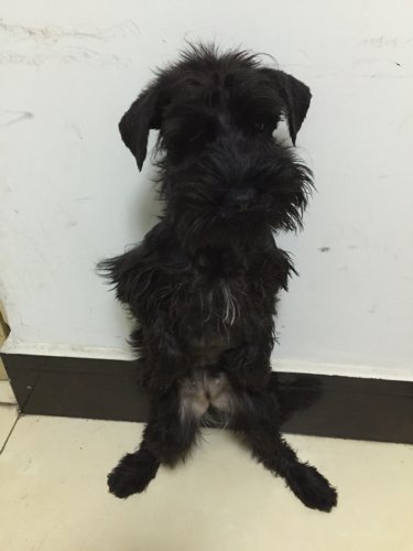 还有十天到五个月的纯黑色雪纳瑞宝宝,从前一个星期开始,发现前腿上边还有脖子下端挨着前腿的地方,毛色