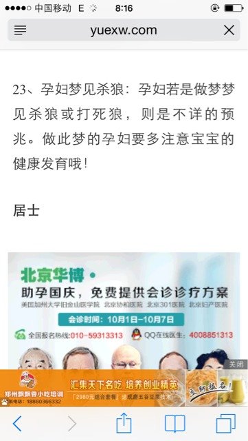 做梦梦见杀死一只狼说是不详之兆怎么注意宝宝的发育情况啊?又不能天天去检查啊! 点击展开 亚亚的宝贝 2014-10-06 08:20 为您推荐: 其他回答 您好,梦其实就是一种混乱的思维状态,梦境可能来源于生活,但是认为梦境能够预示或者暗示什么的说法都是没有科学依据的,是迷信,唯心论的观点。 衷喜明2 2014-10-06 11:44 相关问题 昨晚做梦,梦见自己杀了一只狼! 还有20天生宝宝了怎么最近天天做梦梦见宝宝已经出生了 孕妇天天做梦梦见下梯子是怎么回事