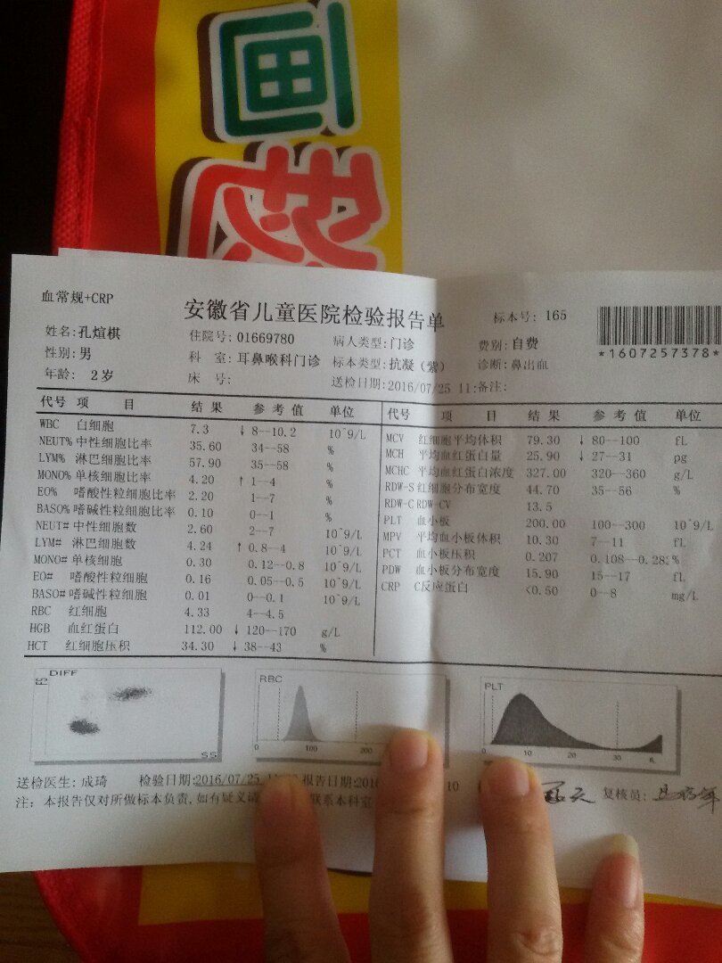 男宝宝三周岁,连着三天半夜流鼻血,去医院检查说是鼻面膜损伤?又验了血和凝血,请大家帮忙看一下 男宝宝三周岁,连着三天半夜流鼻血,去医院检查说是鼻面膜损伤?又验了血和凝血,请大家帮忙看一下大家帮忙看一下,宝宝的血液检查有甚么问题,白细胞低是怎么了,还有贫血该怎么补? 点击展开 匿名用户 2016-07-25 16:00 为您推荐: 其他回答 我家宝贝儿也是贫血,多给他吃一点有营养的东西 匿名用户 2016-07-25 16:49 白细胞低是炎症 匿名用户 2016-07-25 16:30 相关问题 孩子老流鼻血,去医院化验血没事,凝血也没事,但是一直不好,各几天就流一次 凝血酶原时间pt—s是15 1有事么?六岁得女孩老流鼻血有事么? 凝血功能不好,为什么,小孩流鼻血,然后查出来凝血功能不好,什