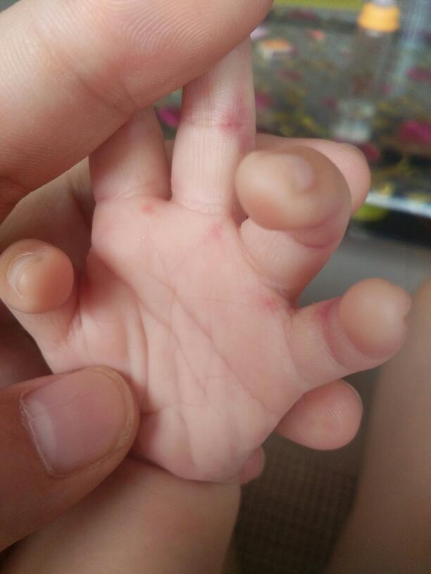 35天宝宝手指缝隙发紫红色像是淤血是的! 点击展开 匿名用户 2016-07-16 13:28 满意回答 考虑可能是湿疹的,建索满乡议平时注意宝宝搂布卧室温度湿度的,不劳基要宝宝太热了的。 cn#BfBupGfufp 2016-07-16 13:29 宝宝知道提示您:回答为网友贡献,仅供参考。 相关问题 35天宝宝手指缝隙发紫红色怎么回事 怀孕31周,手指头让车门夹了,肿了还有淤血,可以用鲜芦荟消炎吗? 手指指甲盖被砸出淤血怎么办?