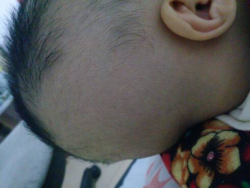 你好,这是枕秃,多因为缺钙引起的,建议多晒太阳,也可以适当的补充钙剂。