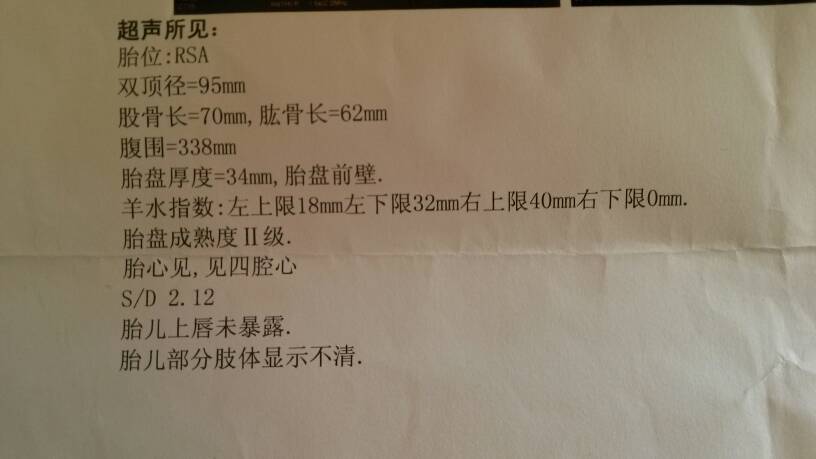 请产科专家帮忙看一下孩子多重哦,谢谢! 请产科专家帮忙看一下孩子多重哦,谢谢! 点击展开 愛、深入骨髓 2014-12-01 15:20 为您推荐: 其他回答 祝宝妈妈好运哦 宋宝宝的好妈妈 2014-12-01 22:05 大概有6.7斤了 雨别ポ恋 2014-12-01 20:45 双顶径是不是就是宫高 輪@佰ぜ滄う桑 2014-12-01 20:18 我那时候偏小,不知道医生是不是算错了。我生的前十天,医生说才五斤半,生下来有七斤。估计有些也是不准的 做个自然优美的女人。 2014-12-01 15:28 我是说我的。你现在就七斤了,营养够好的 做个自然优美的女人。 2014-12-01 15:26 加载更多 相关问题 专家产科大夫帮我看一下,我刚做了胎儿三维B超的情况? 请产科专家看一下我的四维彩超单照胎儿,附图 生完孩子42天 去检查是挂产科还是妇科