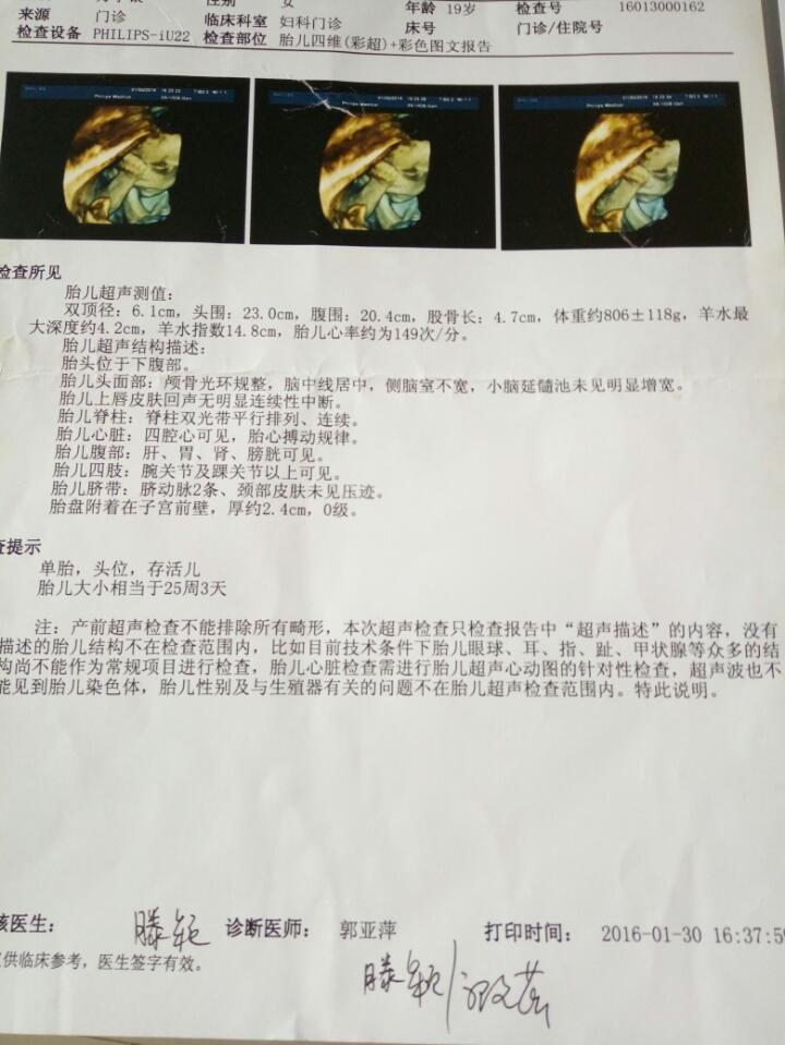 每次彩超都看不到宝宝嘴唇和脸部,不过四维彩超通过了这样还会有问题吗? 每次彩超都看不到宝宝嘴唇和脸部,不过四维彩超通过了这样还会有问题吗? 点击展开 壞〆`小妞 2016-04-02 14:42 为您推荐: 其他回答 那就没问题了,四维都过了,宝妈就别担心了 摘个月亮送给你 2016-04-02 15:28 咨询一下医生吧! 幻想世界 2016-04-02 15:27 一般不会的,保持好心情,祝好孕 axiaobao1212 2016-04-02 15:26 。。。。。。 酸心 2016-04-02 15:26 应该没问题的 离殇老妖 2016-04-02 15:17 加载更多 相关问题 前两天刚做了三维彩超但是嘴唇没照清楚打算下月初在做次四维彩超就是不知道对宝宝有影响不,从怀孕一共做 怀孕六个月了去做四维彩超做了两次都只看到孩子的脊梁骨,看不到脸部和内脏怎么办 有经验的宝妈们给我 22W+4,双顶径:5 5CM,股骨:3 6CM,脊柱:右前显示不全,彩超:嘴唇、双肾、四腔心均显示欠清有问题吗?