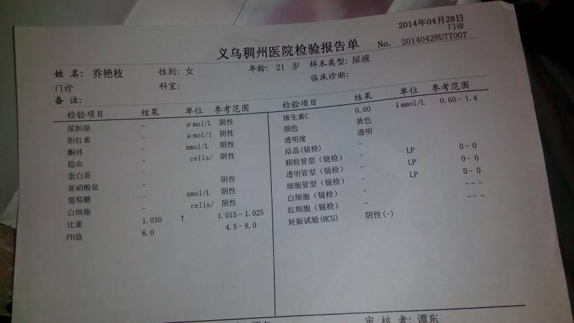 可以帮我看下我的报告单有没有什么问题 医生们 谢谢 可以帮我看下我的报告单有没有什么问题。医生们。谢谢 点击展开 放╮卟下余温散尽 2014-07-03 12:52 为您推荐: 其他回答 白细胞是炎症的代表,你的尿白细胞是阴性的,所以没有炎症。 shodobick 2014-07-03 21:41 就是说你的尿常规是正常的,没有什么问题。 shodobick 2014-07-03 21:37 没有阳性的项目,VC偏低没有什么临床意义。 shodobick 2014-07-03 21:16 你好。你的尿常规结果没有什么问题,就是尿比重高一点,是早晨的晨尿吧?其他都是阴性的,正常。 shodobick 2014-07-03 17:16 相关问题 请在线的医生帮我看一下这个化验单,有没有什么问题 谢谢 麻烦医生帮我看看我的尿液分析检验报告单 注意报告单的第6蛋白质和第8白细胞 非常感谢!谢谢!