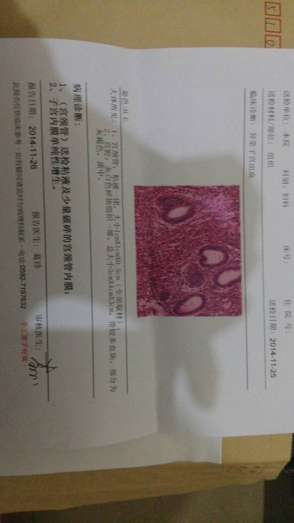 请问下大家女49岁,从报告与病理可以看出是有子宫肌瘤还是其他问题呢? 点击展开 匿名用户 2014-11-29 16:53 为您推荐: 其他回答 你好,你的病理结果显示是功能失调性子宫出血。不是子宫肌瘤及其他恶性肿瘤。 韵动的音符 2014-11-29 19:12 相关问题 子宫肌瘤的病理报告需要几天才能知道结果 县医院做的子宫肌瘤病理结果为啥4天 医生你好,我妈妈45岁阴道流血十几天,在医院住院,检查是有子宫肌瘤,医生做了刮宫,拿去病理科化验