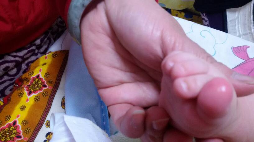 我家宝宝大脚趾红肿而且指甲那边的肉有点有癃,今晚洗完澡给她涂了医院配的药看明天早上情况,不行就要带