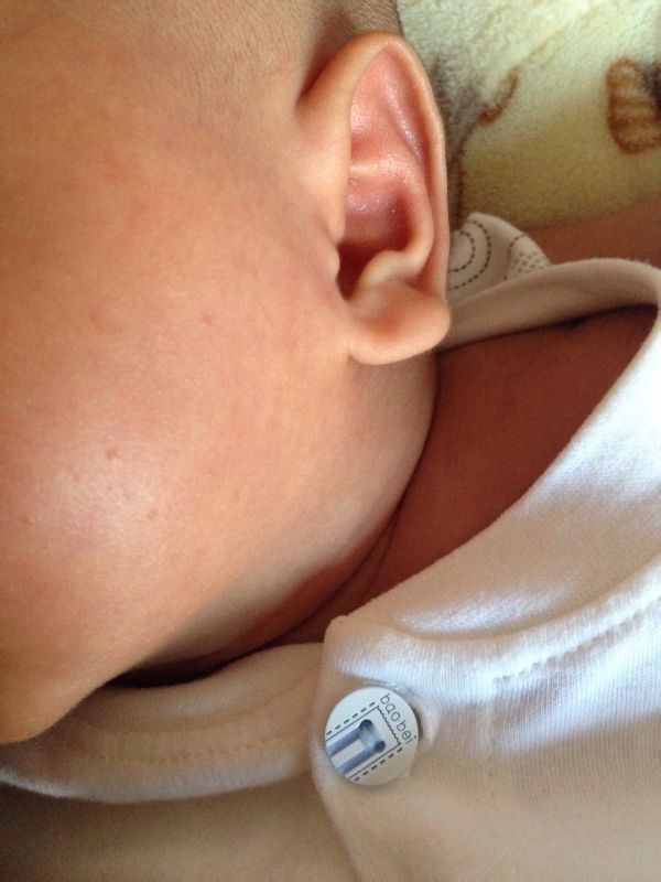 宝宝41天了,今天刚发现脖子左侧筋上有一个比枣核大的疙瘩 他不哭不闹,应该不疼也没发现只往一侧歪