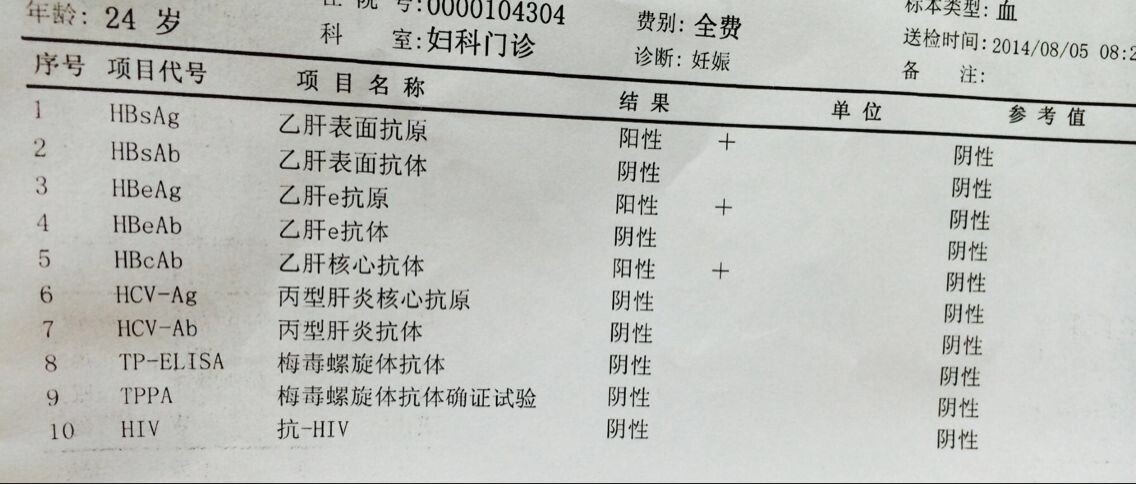 怀孕50天做艾滋病抗体丙肝检测说我有乙肝,我是乙肝携带者请医生帮忙看下检查表到底是乙肝还是病毒携带者 点击展开 匿名用户 2014-08-16 11:31 为您推荐: 其他回答 你这个不是携带者了,算是乙肝了。病毒正在活跃期,不过,你可以继续怀孕,在婴儿出生后24小时内进行阻断就行。 清月色冷 2014-08-16 11:44 相关问题 请问有医生吗?昨天检查我体内没有乙肝抗体了,但是我老公是乙肝病毒携带者,这样对宝宝有影响吗?我怀孕 感冒会影响丙肝抗体,艾滋病,梅病羟基维生素d,叶酸新陈代谢检查吗 我怀孕18周检查发现谷草转氨酶54,谷丙转氨酶119,乙肝有抗体,丙肝和梅毒都是阴性,我现在应该怎么办?