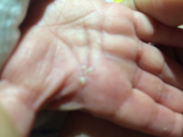 宝宝16天,刚刚发现右手掌心有类似水泡白点~请问是什么问题? 宝宝16天,刚刚发现右手掌心有类似水泡白点~请问是什么问题? 点击展开 159*****766_UMln 2015-02-20 21:11 为您推荐: 其他回答 敢快去医院看看吧 傻瓜.. 2015-02-20 22:11 没见过,问问度娘 慕容丹丹33 2015-02-20 21:27 赶快看看吧。 魔幻火花 2015-02-20 21:23 赶紧问问医生吧 执念° 2015-02-20 21:17 新年快乐!哝 蜗牛散步迷路了我呸 2015-02-20 21:13 相关问题 怀孕后右手掌心痒起水泡是胆汁酸高吗 最近这几天宝宝额头上长了七八个像火疖子似的白点 那是什么原因 宝宝出生30天,牙龈上涨了好几个带白点的小包