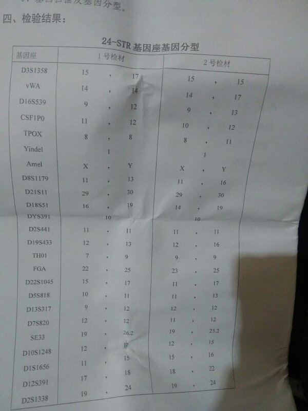 你好,请懂的人士帮我看看这亲子鉴定报告数据是亲生关系吗??谢谢 点击展开 匿名用户 2015-10-29 17:11 推荐回答 是亲生做呈的。清恨崇你没看到都是很接近的吗。 如果有很大的偏差就证明不是亲敲殖生的。 匿名用户 2015-10-29 17:13 宝宝知道提示您:回答为网友贡献,仅供参考。 为您推荐: 其他回答 是 匿名用户 2015-10-29 17:23 不是 匿名用户 2015-10-29 17:15 老天,给你报告时不会问啊 匿名用户 2015-10-29 17:12 相关问题 请求专业人士帮忙看下亲子鉴定数据,告知下结果,非常感谢! 你好!我想咨询一下,我现任丈夫的小孩非他亲生!他只是私至做了亲子鉴定!要怎么做才能彻底与这个小孩断 你好我请问下成都华西做DNA亲子鉴定多少钱啊