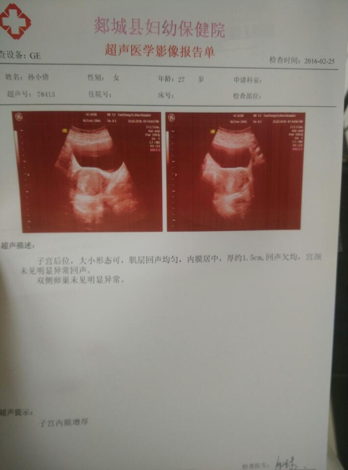 今天停经第5天了,早早孕也测到阳性。可是中午突然阴道出血 有几滴的样子 鲜红色的。去医院做了B超 验了血。做B超的医生告诉我内膜厚已经流完了,当时哭着拿着B超单子去给医生看,医生告诉我很有可能是天数太少还没进入宫内,但是不排除宫外孕的可能。让一周后去复查,等待是漫长的。有没有路过的医生帮忙分析分析,或者是有过类似经历的宝妈。谢谢你们了!真的很着急!下面是B超图,人绒毛膜促性腺激素值是463.08。