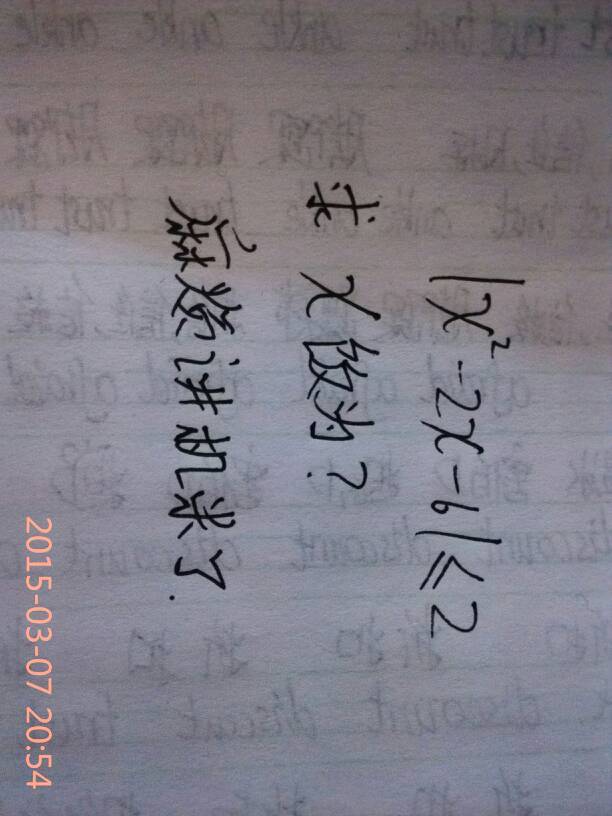 参考: 原式化为抓叹:-2≤x^2-2x-6≤2 1、院用挤-2≤x^2-2x-6;0≤x^2-2x-4;5≤(x- 1)^2 解得:x≥1+√5 或 x≤1-√5 2、x^2-2x-6≤2;x^2-2x-8≤0;(x-4)(X+ 2)≤0 解得:-2≤x≤4 所以且剑:1+√5≤x≤4 或 -2≤x≤1-√5