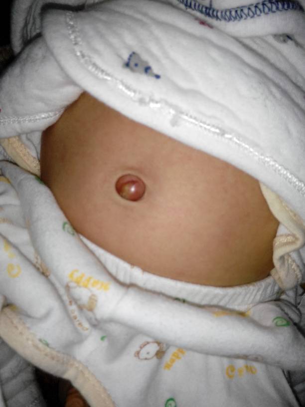 昨天晚上给宝宝洗澡的时候还好好的,刚才一天才发现宝宝的肚脐眼肿了!你们知道这是怎么搞的!急死我了