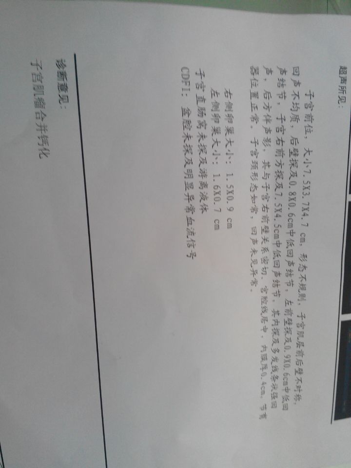 子宫肌瘤合并钙化! 请问第一张是吃中药一个月后的结果,第二张是一开始的检查!对比一下症状有没有转好!吃中药是否管用!医生建议摘除子宫!患者56岁 点击展开 匿名用户 2014-09-29 14:19 为您推荐: 其他回答 你好,子宫肌瘤的发展变性可以分为五种情况:一是玻璃样变;二是囊性变;三是红色变;四是肉瘤样变;五是钙化。所以现在检查子宫肌瘤合并钙化,说明子宫肌瘤已经在变性了。 这样的情况,建议还是手术治疗为好,如果有生育功能的需要,可以做肌瘤剔除术。 其秋华_zWya 2014-10-14 08:52 相关问题 子宫肌瘤钙化会癌变吗? 这个月去检查,医生说我婆婆子宫肌瘤伴钙化要开刀,而且我婆婆已经绝经了,以前听医生说如果没大的话就没 子宫肌瘤半钙化严重吗 3g topic xywy com