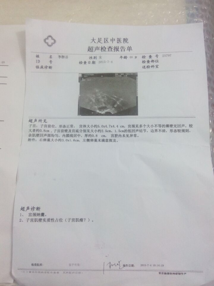 请问大家这个妇科检查单里面的子宫肌瘤有多大啊?看的懂的过来说一下吧 点击展开 匿名用户 2015-10-29 14:26 满意回答 你好!阴道镜检查结果:是宫颈纳氏囊肿,慢性宫颈炎引殊纪顿起了宫颈腺管堵塞引起的。朗之不是肌瘤。柴潜 wz673 2015-10-29 15:00 宝宝知道提示您:回答为网友贡献,仅供参考。 相关问题 求懂的告诉我这是几个子宫肌瘤,有多大 7月22日妇科检查有子宫肌瘤,有6公分大小,我今年39岁月经期提前,白带多,没有流血现象,我不想手术 左小腹每天隐隐的痛,妇科检查说里面能摸到包块,怀疑是子宫肌瘤,但照B超不是,而且这几天拉肚子,今天