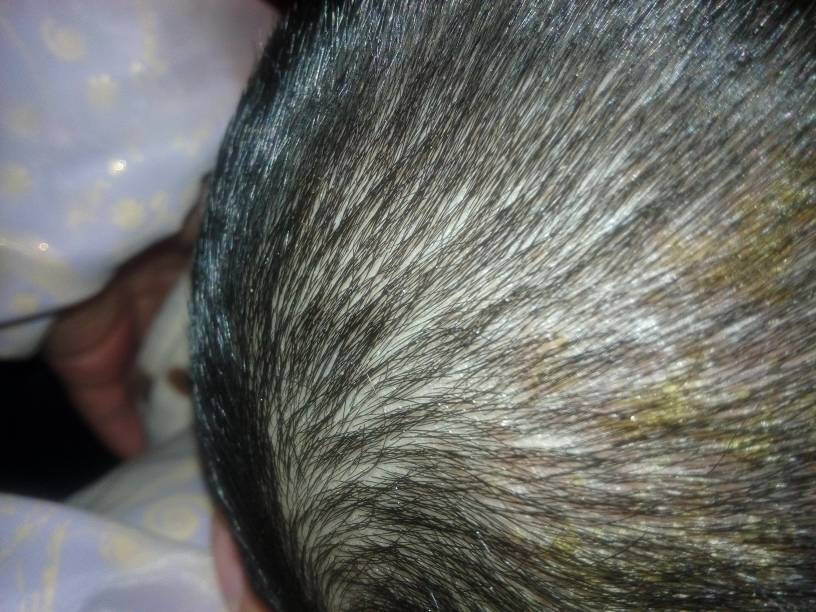 我家也是,不过是白白的一层,又痒,他抓得都出血,愁
