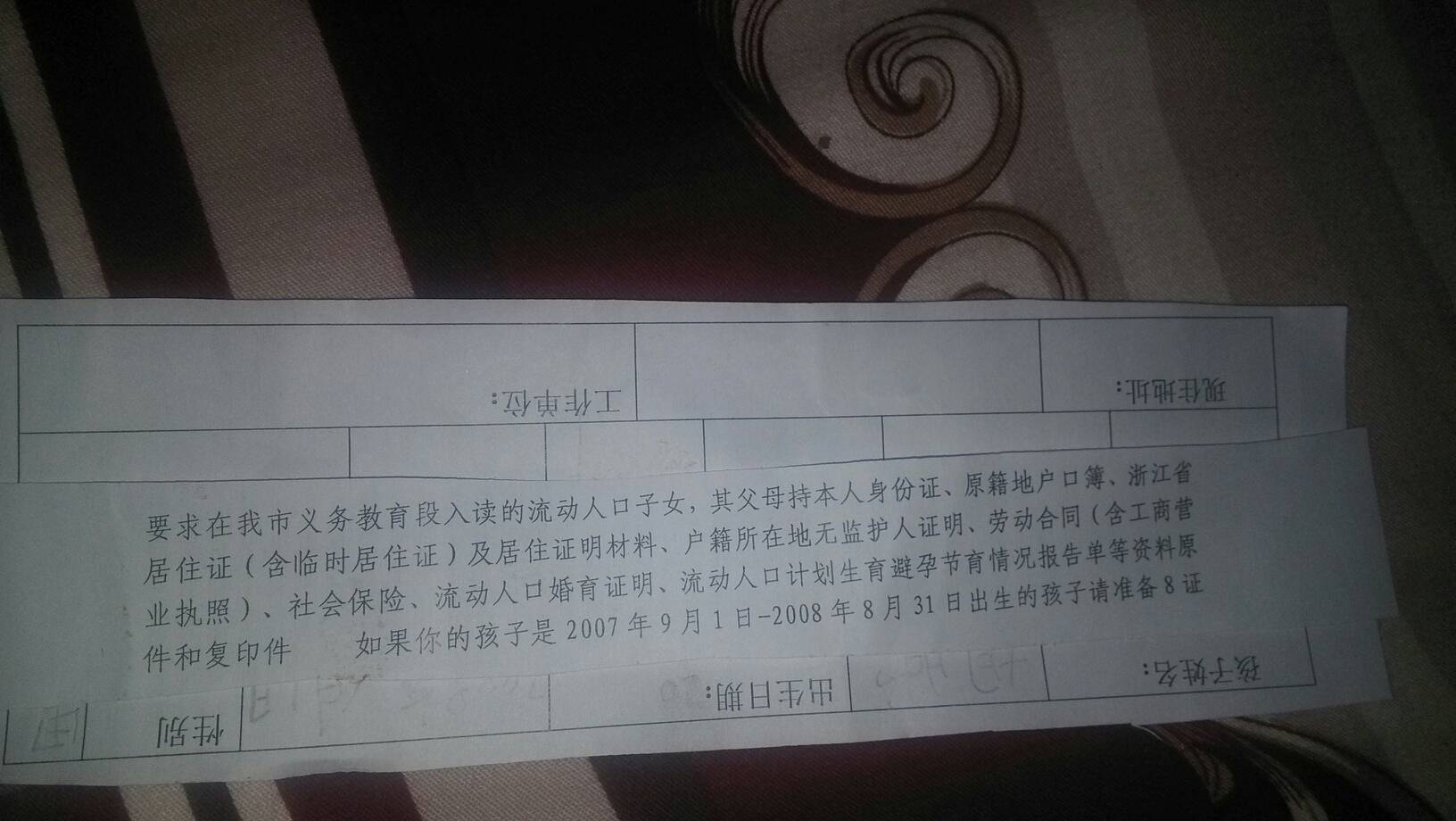 看到的朋友帮忙转转吧.这是浙江省,慈溪市逍林镇教务办的规定.外地民工必须交那个社保才让小孩上学,是每月470多元的那种,两夫妻都得交,一年10000多呀.有多少外地人承受得起,说好的九年义务教育呢?转者都是好人一生平安!