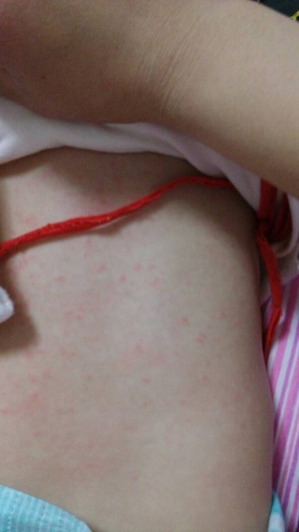 宝宝前两天发高烧,拉肚子 昨晚到现在没有发烧仍拉肚子 今晚发现身上出现这样的东西,是不是疹子?