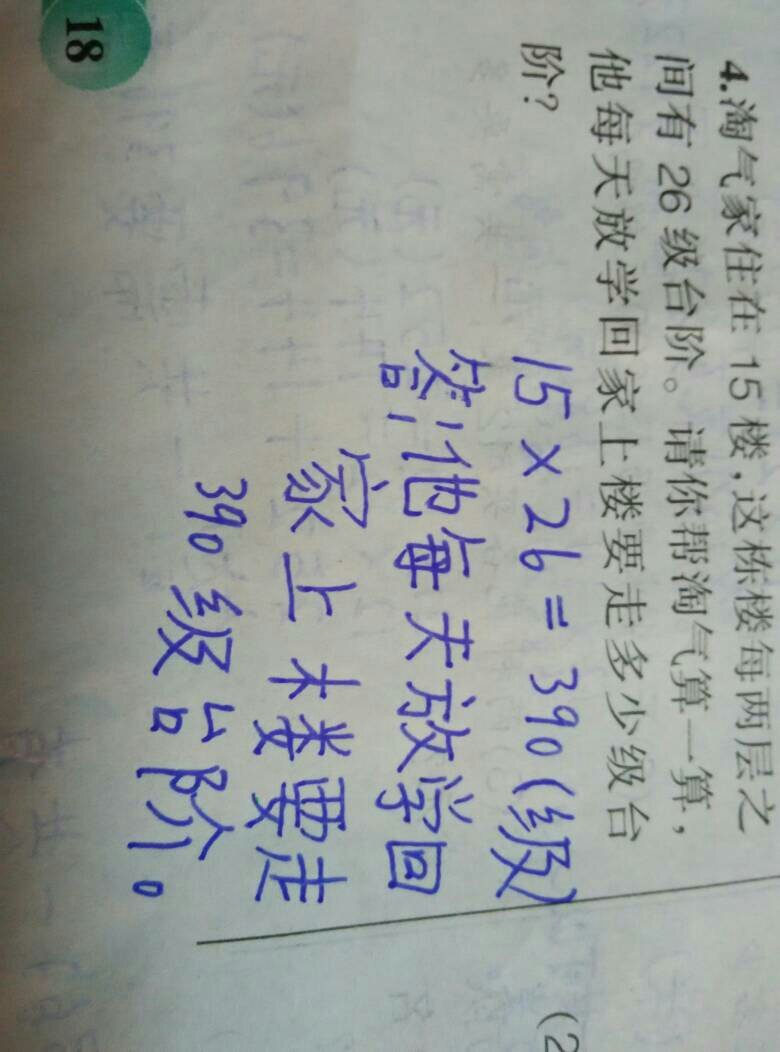 错,15层楼要上14次楼梯 26×(15-1) =26×14 =364