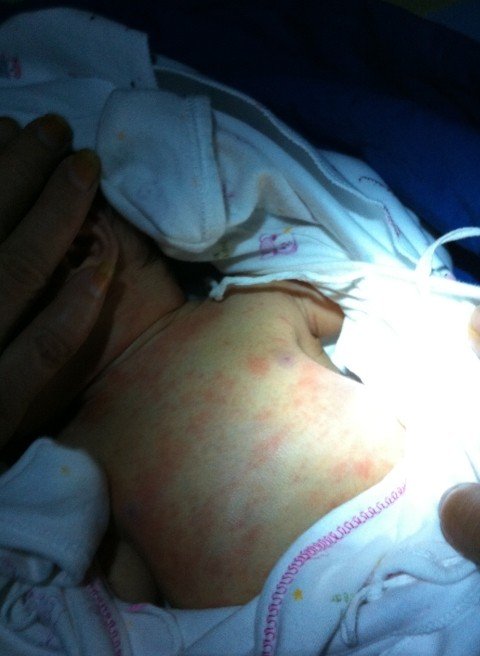 新生儿两天 顺产 打了防疫针 已经出院 回来下午至现在身上又红色片状 点击展开 匿名用户 2014-08-14 02:04 为您推荐: 其他回答 赶紧到医院去啊,去看看是不是疫苗引起的过敏还是皮肤疾患,新生儿拖不得,赶紧抱到医院瞧瞧去,免得耽误病情。 jiaoshihuia 2014-08-14 06:39 相关问题 新生儿出生时打的防疫针,现在两个月了打针部位红肿结痂,请问是怎么回事? 新生儿第一次打防疫针需要带什麽证件 新生儿打防疫针是不是要提前去登记,去哪登记,都需要什么