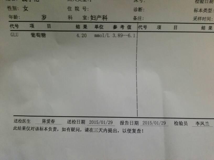 谁能帮忙看下血糖正常吗,是个孕妇,是空腹做的 谁能帮忙看下血糖正常吗,是个孕妇,是空腹做的 点击展开 张家拽少 2015-01-29 15:14 为您推荐: 其他回答 不超过5.1就行 158*****780_2KpD 2015-01-29 17:02 正常.... 萌ლ(╹◡╹ლ)宝 2015-01-29 16:32 你现在是孕期,这时你测得空腹血糖4。2mmol/L正常。建议你加强营养,定期检查胎儿情况。 一缕阳光花开艳 2015-01-29 16:14 正常,放心。 詠謜誌暧曉諒諒 2015-01-29 15:48 120正常。 小云云 2015-01-29 15:47 加载更多 相关问题 孕妇空腹血糖的正常值是多少? 孕妇空腹血糖82mg/dl,服用50克葡萄糖一小时后158mg/dl,两小时134mg/dl,三小时97mg/dl算正常吗