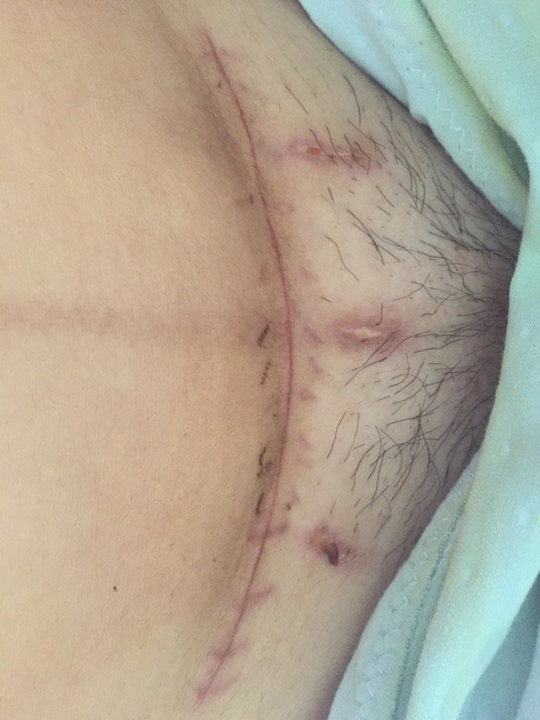 那刀口长的很好啊。三个月以后可以抹去疤膏