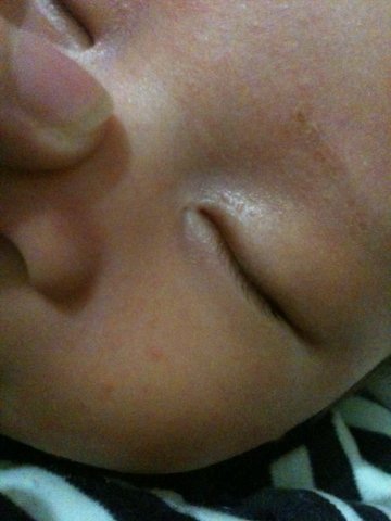 宝宝现在一个月,内眼角外皮肤上有一个针眼大小凹坑,出生时几乎看不到,1个月后明显变大,而且凹陷处出