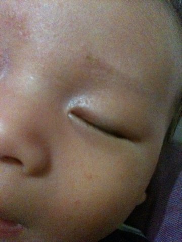 你好,你的问题应该放在皮肤科或者是眼科分类上,最好还是直接的去就诊看看,不要乱用维生素E给孩子涂沫在皮肤上,可能会让你失望,用过的皮肤会出现表面象是有一层塑料皮蒙在外面一样的感觉,硬角角的。