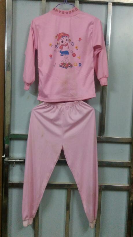 昨天晚上邻居有小偷入屋,邻居小女孩穿着这衣服睡觉,醒后发现家人发现她的衣服和裤子有障东西,大家觉得