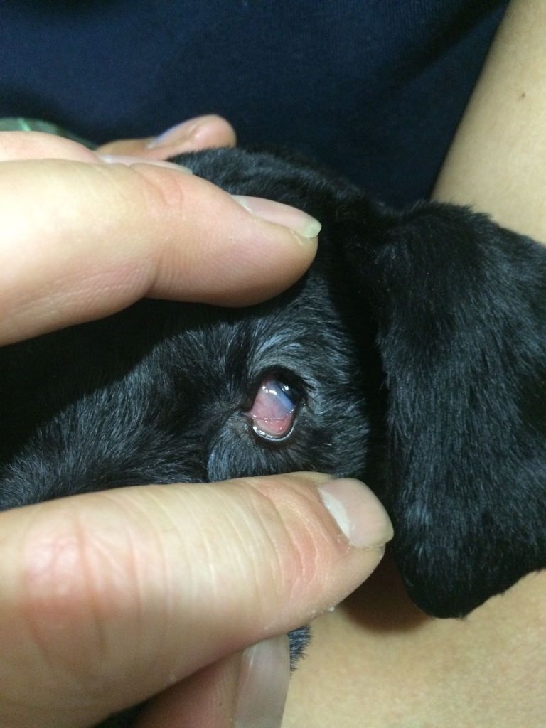 家里的泰迪,五个月大,刚把毛剃完,然后被摩托车压了,治疗第三天开始左眼一直有眼屎,是那种淡黄色像鼻