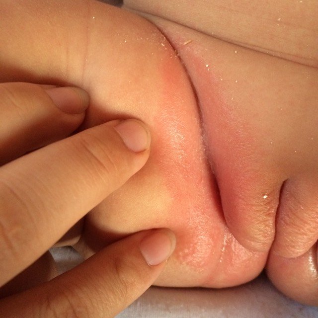亲们,宝贝大腿根部红成这样,用什么东西比较好,是尿不湿不好还是用的方式不对呢 想说去医院配点药,现