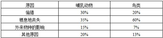 某同学调查了一片森林中哺乳动物和鸟类濒危或受到威胁的原因,见下表.根据表中内容回答问题.(1)在下