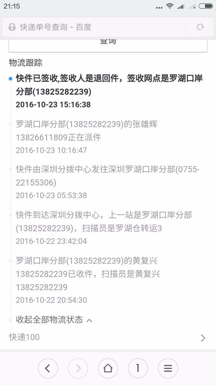 昨天用天天快递从深圳罗湖邮寄四桶奶粉到河北,今天快递状态显示签收退回件,大家有遇到过这种情况吗? 点击展开 匿名用户 2016-10-23 21:19 满意回答 明早打那个手机问问 是不是收件人拒收了 匿名用户 2016-10-23 21:21 宝宝知道提示您:回答为网友贡献,仅供参考。 相关问题 想从深圳发一台小孩子玩的双人座电动汽车到甘肃宁县,邮局邮寄下来估计多少钱,快递的话哪家快递公司可以 深圳月嫂公司大全?深圳罗湖区月嫂公司哪家好啊? 深圳月嫂公司大全?深圳罗湖区月嫂公司哪家好啊?