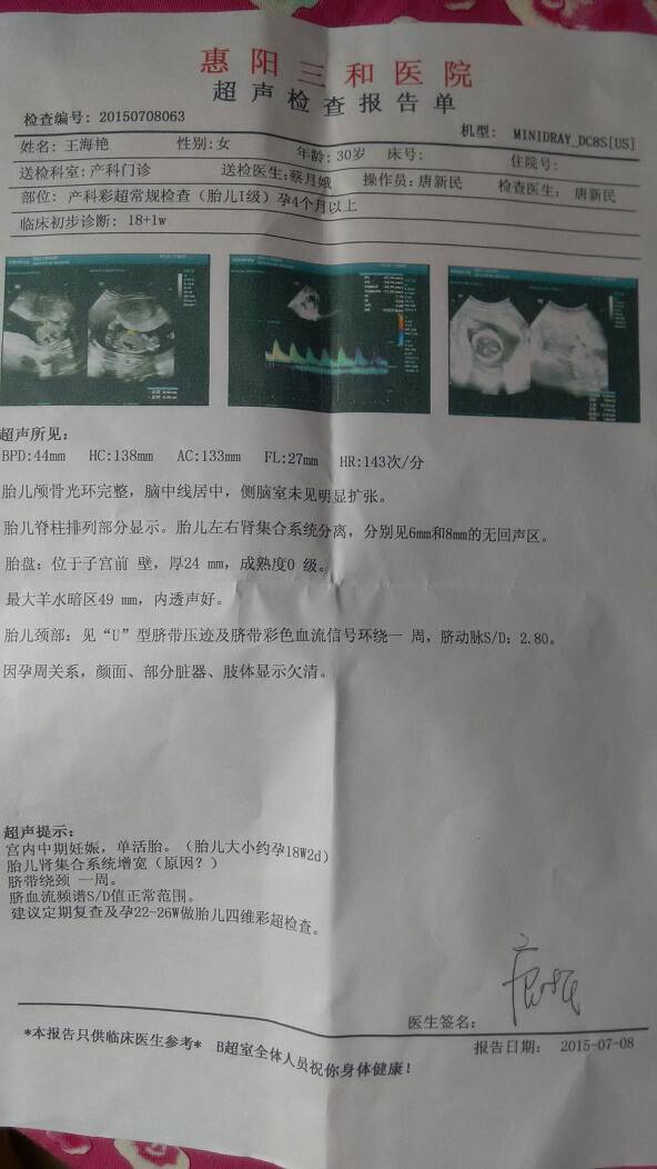 18周2天今天去检查B超单显示胎儿左右肾集合系统分离,分别是6mm和8mm的无回声区,小孩能要吗?