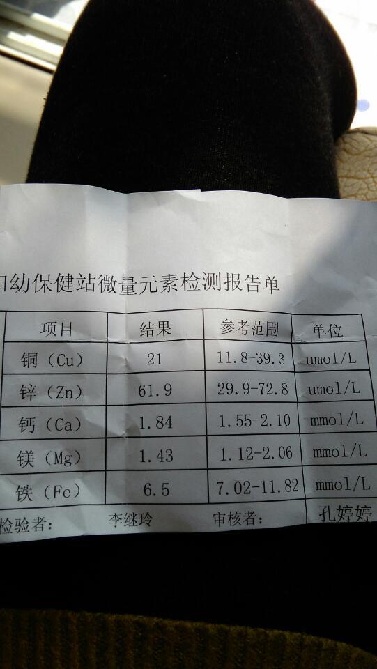 宝宝7个月,微量元素检查铁不在范围内 有点贫血严重吗?要吃药吗?还有钙是正常的但医生开了一个月的迪 宝宝7个月,微量元素检查铁不在范围内 有点贫血严重吗?要吃药吗?还有钙是正常的但医生开了一个月的迪巧钙剂 还继续吃吗? 点击展开 第二完美 2016-03-11 13:00 为您推荐: 其他回答 要吃。。。 随釦説钚鍀 2016-03-11 16:55 严重,,, 宝宝爱粑粑麻麻:-D 2016-03-11 15:05 你家宝宝微量元素都达标啊,不需要吃的,钙不缺的话不要补,可以食补 雯妞儿 2016-03-11 14:44 当然继续因为孩子还小 177*****970_hw2U 2016-03-11 13:55 食补好一点 小牛丸的麻麻 2016-03-11 13:53 加载更多 相关问题 给宝宝查了微量元素,缺铁锌,还有贫血,医生给开了钙铁锌颗粒,大概要吃到什么时候呢?多久复查一次呢? 六个月的宝宝持续低烧,检查一切正常,就是中度贫血,医生说是贫血引起的,贫血也会引起低烧吗? 宝宝2个月查血医生说有点点贫血,请问怎么办?