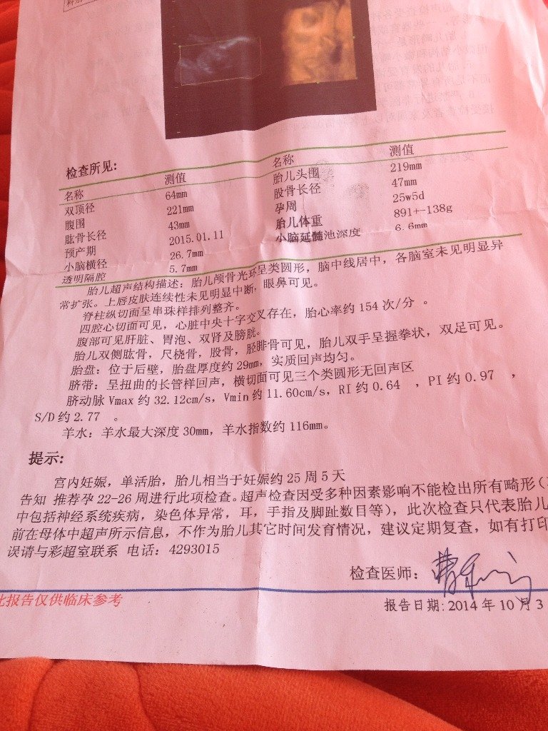 这是10月3号做的四维,到现在是几个月了,帮忙看看,感谢 这是10月3号做的四维,到现在是几个月了,帮忙看看,感谢 点击展开 冰儿_EWLC 2014-12-22 12:58 为您推荐: 其他回答 六个多月。 陈春妙 2014-12-22 15:12 宝妈好孕! 踮起脚、亲你_Pz0i 2014-12-22 15:11 正常……… 阿狸说我很好 2014-12-22 13:56 。。。。。。 抱歉爱过你 2014-12-22 13:49 你好!怀孕后孕龄的计算是按末次月经来的第一天,根据四维上的时间,您现在怀孕37周。 cn#BBLQpuQVuf 2014-12-22 13:08 加载更多 相关问题 做了四维,帮忙看看是男宝还是女宝,有没有会看的,感谢 我现在怀孕5个月了,是去做个普通的彩超还是等到6个月的时候去做个四维彩超呢?做四维彩超有必要吗?我 怀孕四个月的时候做个四维彩超,医生说胎儿发育正常,就是有点瘦,现在都五个多月了还需要做四维彩超看畸
