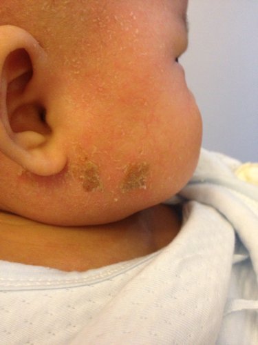 病情分析: 你好,根据你的描述,这不排除是小儿湿疹的可能哦,是一种变态反应性皮肤病,就是平常说的过敏性皮肤病。主要原因是对食入物、吸入物或接触物不耐受或过敏所致。患有湿疹的孩子起初皮肤发红、出现皮疹、继之皮肤发糙、脱屑,抚摩孩子的皮肤如同触摸在砂纸上一样。 指导意见: 建议你可以去药店买小儿湿疹膏...