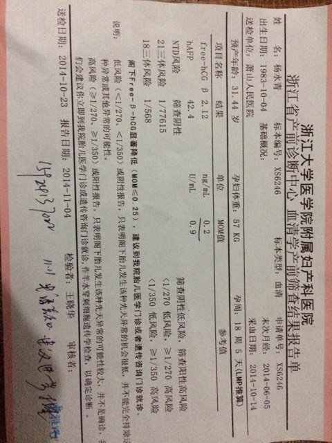 医师帮我看看,这个结果我应该怎么做,看的懂的麻烦帮我看看 医师帮我看看,这个结果我应该怎么做,看的懂的麻烦帮我看看, 点击展开 美天下 2014-11-12 21:32 为您推荐: 其他回答 从提供的唐氏筛查报告看,游离绒毛膜促性腺激素的矫正值偏低,不排除胎儿畸形的可能,但不是绝对的。建议遵医嘱,进一步检查排除。 wzlzx520 2014-11-13 14:15 没事的宝妈 ..._4xUi 2014-11-13 11:04 建议做羊水穿刺,就是费用高! "铱舊"尒囡亾~ 2014-11-12 22:49 医生怎么说呢 堂堂唐家大小姐 2014-11-12 22:13 貌似后面两个都是高风险啊 堂堂唐家大小姐 2014-11-12 22:12 相关问题 求助麻烦医师们帮我看看,谢谢 请问我6周,孕酮8 80是不是不正常,医生说我怀孕质量不好,可能会…还有一些我看看不懂,麻烦大家帮我看看 今天做的产检,医生说都跟正常,可以麻烦其它医师在帮我看看吗?