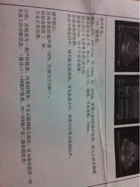 宝妈们帮我算算我宝宝有多重 这是八个月时的B超单 宝妈们帮我算算我宝宝有多重。这是八个月时的B超单 点击展开 平安公主 2014-12-09 21:40 为您推荐: 其他回答 四斤多一点 幻宇80s 2014-12-15 11:16 ……U型压迹,胎儿可能脐带绕颈,还有什么你得去让医生看下单子 遗忘_0x0y 2014-12-12 21:35 这张单子医生有没有告诉你有问题?单子中有问题哦 遗忘_0x0y 2014-12-11 20:12 四斤多点点 遗忘_0x0y 2014-12-11 20:11 4斤多了! 倾世温柔只给《金》 2014-12-10 21:48 加载更多 相关问题 宝妈们帮忙算算我的预产期,我最后一次月经是3月1号,平时月经都挺准的,但是第一次b超大夫说我受孕晚 各位宝妈们好!帮我看一下我的娃有多重,谢谢了!