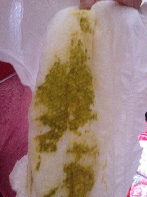 请问宝妈们,我家宝宝二十天,刚开始奶粉,后来母乳喂养,就出现了这种青色的便便,稀的应该是母乳性腹泻