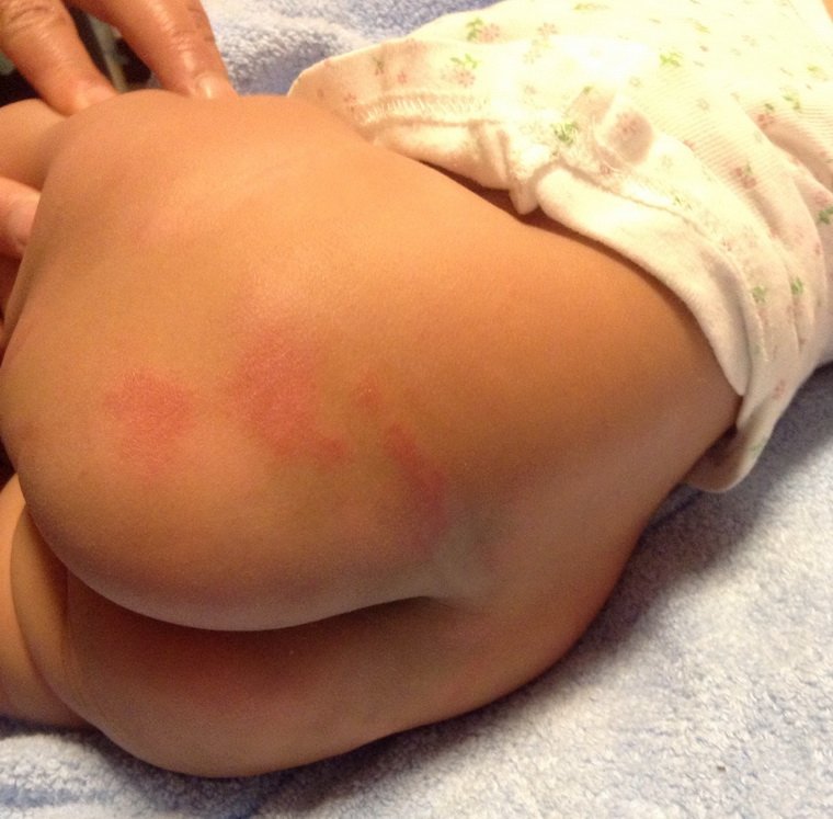 这叫尿布疹 应该到医院让医生开点药膏,擦几次就会好的