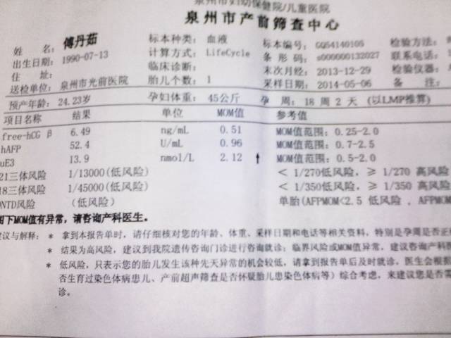 帮忙看下胎儿情况要不要紧,严重吗? 帮忙看下胎儿情况要不要紧,严重吗? 点击展开 媽媽︿咪吖 2014-05-20 20:06 为您推荐: 其他回答 不需要担心,按时产检,保持好心情 可靠的悠闲80 2014-05-23 17:24 ue3是游离雌三醇,是胎儿胎盘单位产生的雌激素,有点偏高,按时产检就好 可靠的悠闲80 2014-05-23 10:59 按时产检 可靠的悠闲80 2014-05-22 18:04 你好,宝宝是没有什么问题的,都是低风险的,不需要担心,如果宝宝有异常的医生会告知的。 可靠的悠闲80 2014-05-22 16:48 相关问题 帮忙看一下,医生说胎儿脑袋大,这个严重吗? 请医生帮忙看下,不懂得不要乱评论,如果吃药或抹药对胎儿有害吗!如果有害我不用药我这皮肤对胎儿没伤害 怀孕五个半月了,今天去做彩超,医生说我胎儿头大,脑里有水,请大家帮忙看下有没有问题?